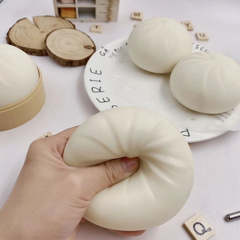 Стильный и привлекательный дизайн с милыми булочками. Имитация паровых булочек с тонкой обработкой, выглядит чрезвычайно реалистично и визуально. Снимает стресс и беспокойство, улучшает кровообращение в руках в качестве реабилитационных упражнений. Поставляется с нежной поверхностью, внутри есть Пенообразователь для жидкой муки, чтобы эта декомпрессионная игрушка могла быстрее отскочить. Благодаря хорошо изготовленной мягкой внешней коже, он лучше прикасается к рукам, и оба они [идеально подходят для игр детям и взрослым.