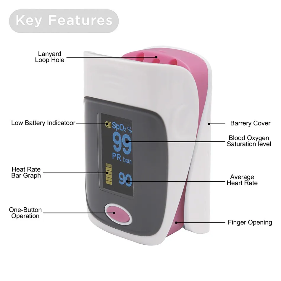 Цифровой Пульсоксиметр на палец с футляром для измерения насыщения ...
