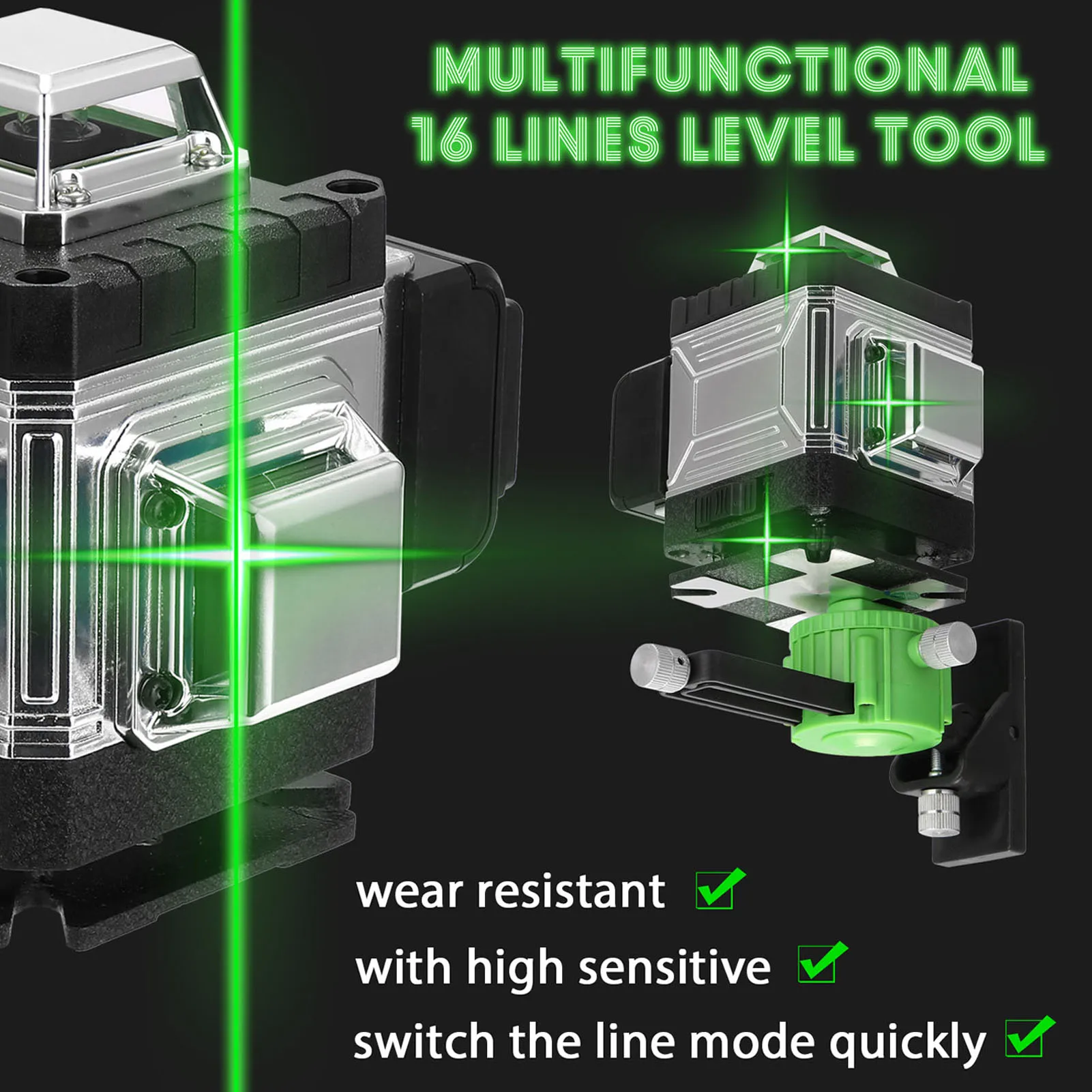 Многофункциональный лазерный уровень с 16 линиями, 3 , самовыравнивающийся, функция выравнивания, инструмент для всенаправленного грунта и наклейки на стену