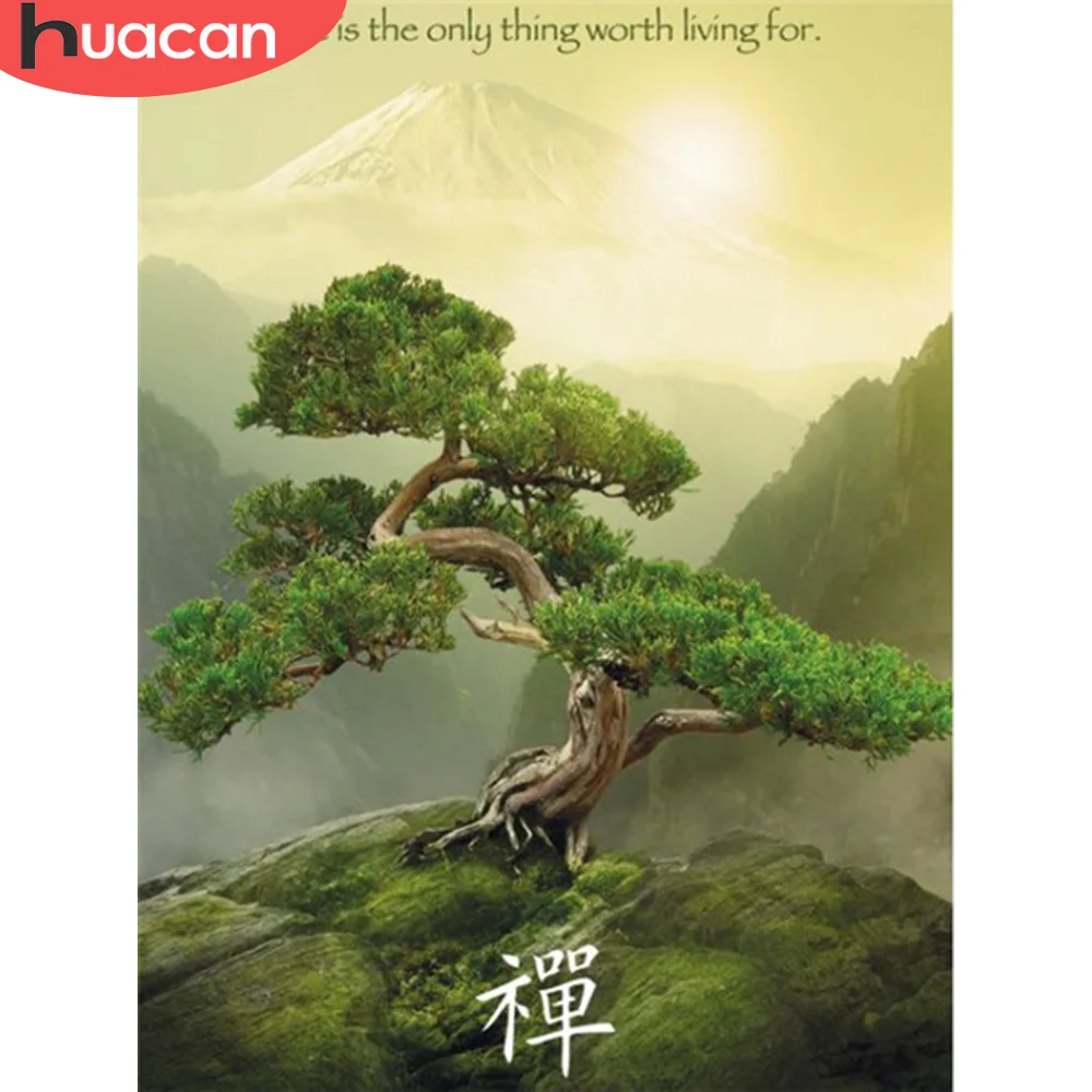 Алмазная 5D картина HUACAN сделай сам, полноформатная круглая вышивка с мотивом пейзажа, дерева, мозаика