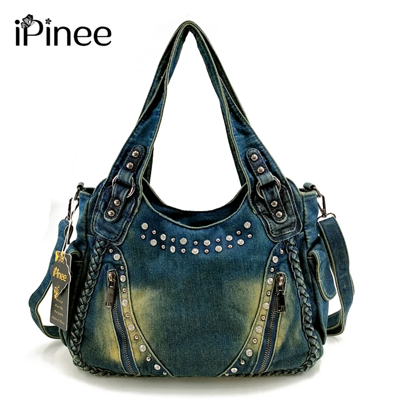Брендовая женская сумка iPinee, модные джинсовые сумки, женские джинсы, сумки на плечо, дизайнерская женская сумка-тоут