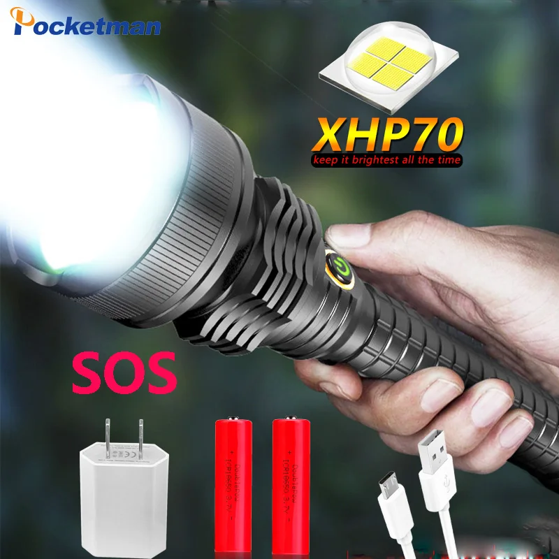 Самый мощный светодиодный фонарик XHP70.2 XHP50, Перезаряжаемый USB...