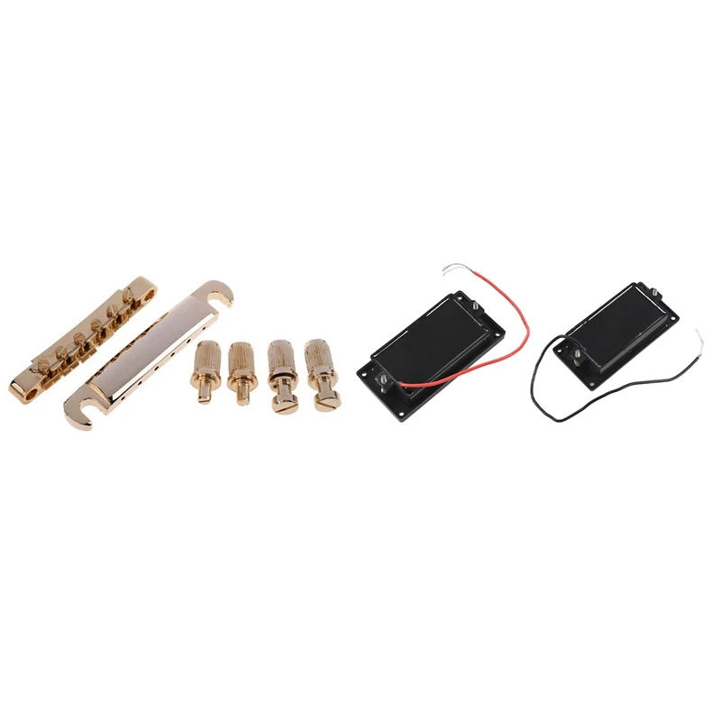 1 комплект Герметичный Набор Humbucker Pickup и 1 комплект ABR-1 Стиль Tune-O-Matic Bridge TailpieceОтличный набор humbucker pickup/совместим с GIBSON LP EPIPHONE гитарыЗвукосниматель шеи рассчитан на 8,5-выбор шага 9K/гитарный звукосниматель рассчитан на 8,5-9KТройной воск окунут и вакуум запечатан, чтобы устранить любые нежелательные Отзывы и шумКаждый пикап включает винты и пружины с регулировкой высотыГитарный пикап:Материал: медь и пластикЦвет: черныйЭтот набор для захвата humbucker идеально подходит для положения моста и шеи.Он совместим с гитарами GIBSON LP EPIPHONE.Эти пикапы отличного качества предназначены для того, чтобы дублировать классический теплый звук, но они имеют немного больше выхода, чтобы дать вам немного более хрустящий удар.Отличная замена для вашего сломанного, грязного или старого humbucker пикапа!6 струн LP сплошная струна база:Для гитары LES PAUL Style, в золотистой отделкеМост прибл. Длина 84 мм, от середины отверстия до середины отверстия, примерно. Длина 72,5 ммЗадняя часть около. Ширина (17 мм) Длина (98 мм), расстояние между 2 шпильками (82 мм, от центра до центра)Цвет: ЗолотойМатериал: металлПосылка:1 комплект * Гитарный пикап (с 8 крепежными винтами)1 * LP мост1 * Задняя часть4 * соответствующие постыТолько вышеуказанная посылка, другие товары не включены.Примечание: светильник и различные дисплеи могут привести к тому, что цвет товара на картинке немного отличается от реального. Допускается погрешность в измерениях +/- 1-3 см.