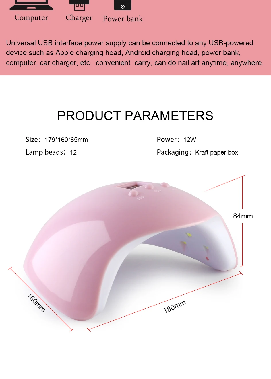 Сушилка для ногтей с кабелем Micro USB, 12 Светодиодный