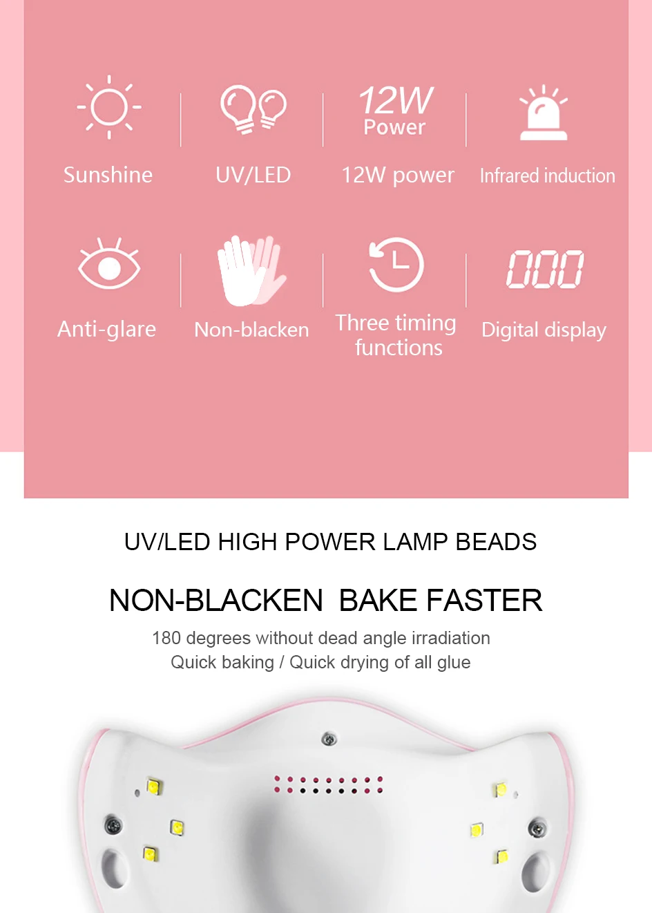 Лак для ногтей-это своего рода испаряемый продукт, который нельзя высушить при помощи лампы для ногтей, поэтому не используйте эту лампу для сушки лака для ногтей.
