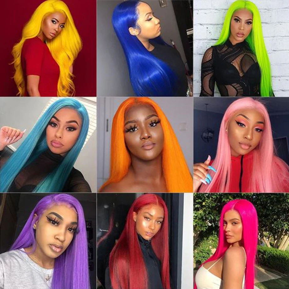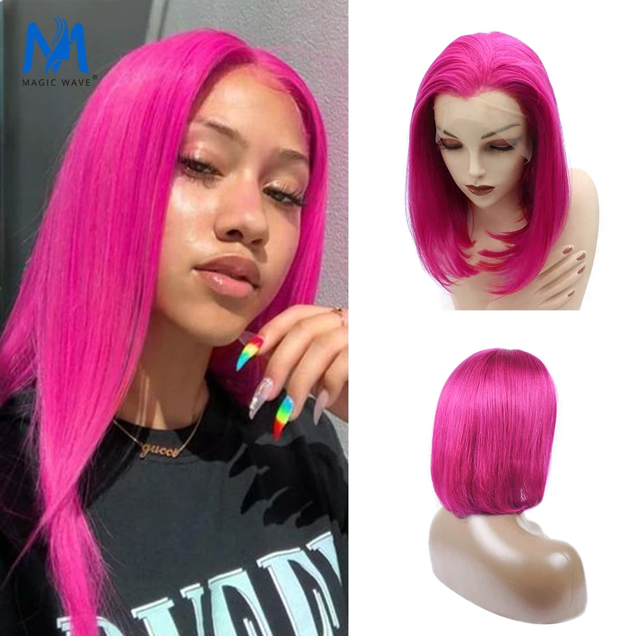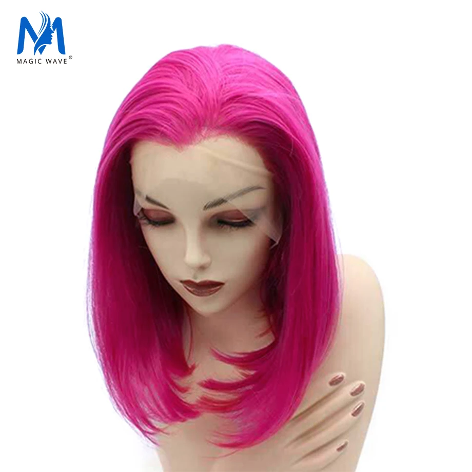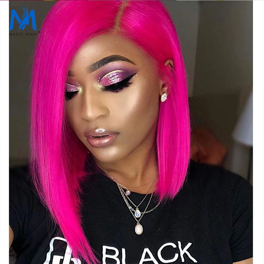 Боб синтетические волосы на части парики, красная фуксия предварительно собранные человеческие волосы, Красная Кружева передние парики для чернокожих Для женщин Волосы Remy парики
