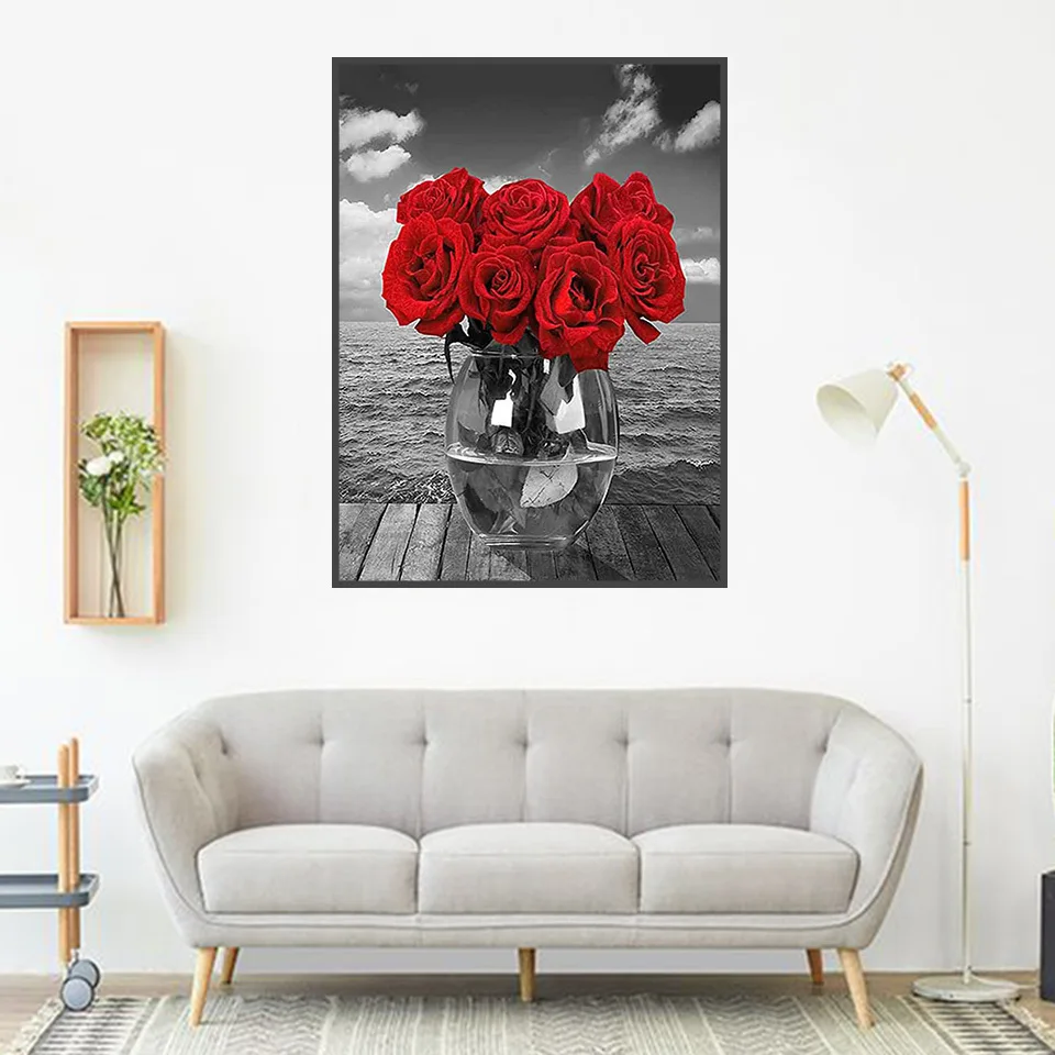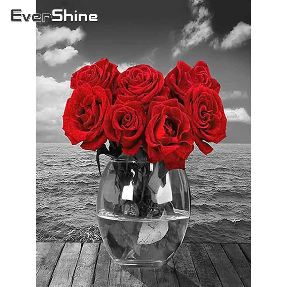 EverShine Алмазная вышивка Роза вышивка крестиком Алмазная мозаика цветы картина стразами Черный и красный декор для дома наборы мозаики