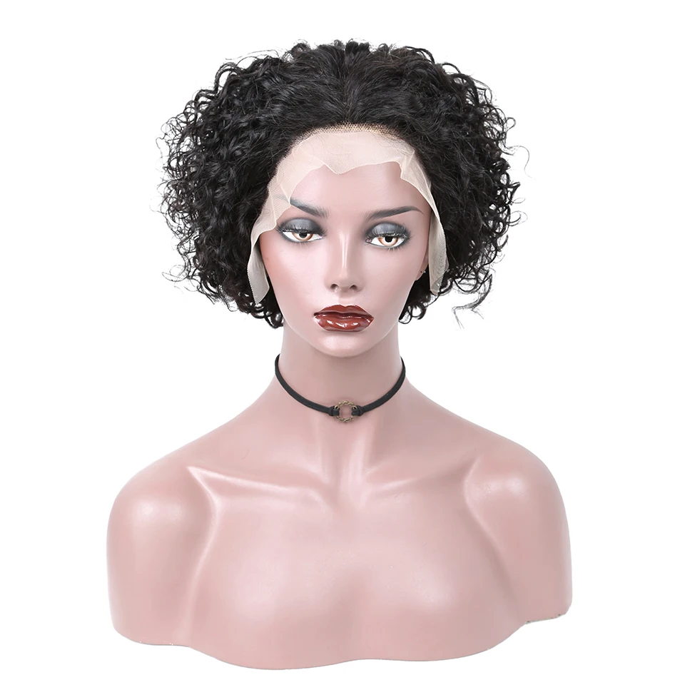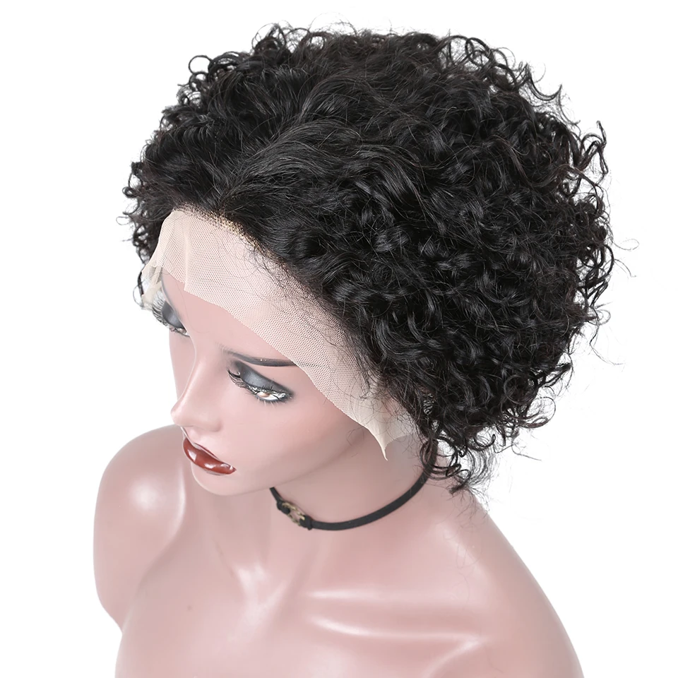 Фунми вьющиеся короткие парики из человеческих волос для чернокожих Для женщин стрижка Пикси парик прозрачный часть синтетические волосы парик шнурка человеческих волос бразильские волосы парики вьющиеся