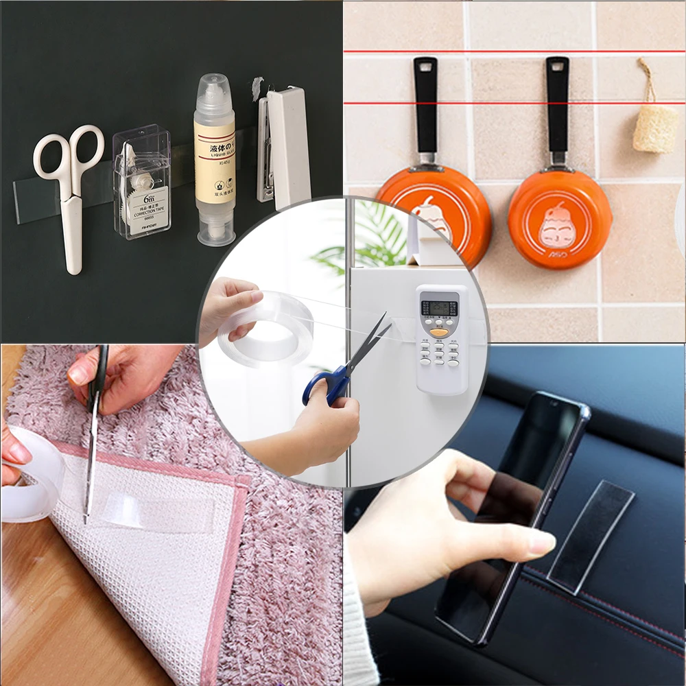Двухсторонние резиновые наноленты без следов, многоразовые прочные кухонные прозрачные наклейки без следов, противоскользящая Водонепроницаемая очищаемая лента