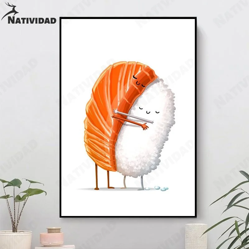 Украшение для дома, лосось, суши, художественный плакат с персонажами из мультфильмов, милая детская Картина на холсте, настенное искусство, для подростков, для спальни, эстетический Декор