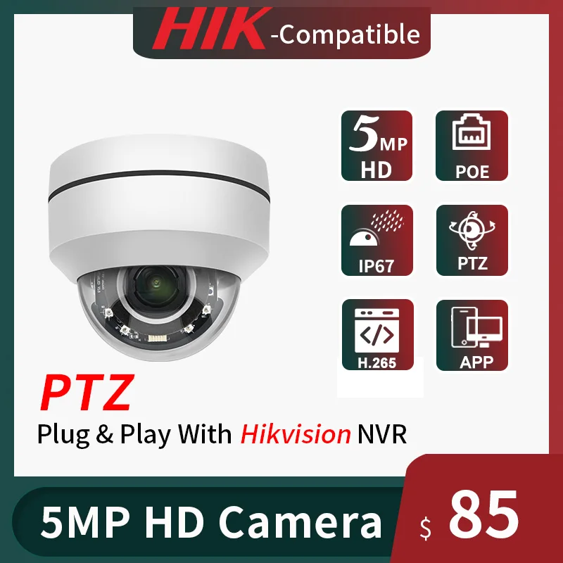 Купольная IP-камера видеонаблюдения, 5 МП, 4 шт., PTZ, POE, 2,8-12 мм, ИК, Поддержка Plug Play, Hikvision