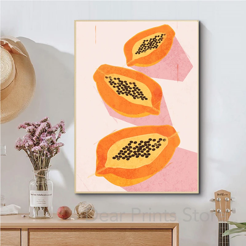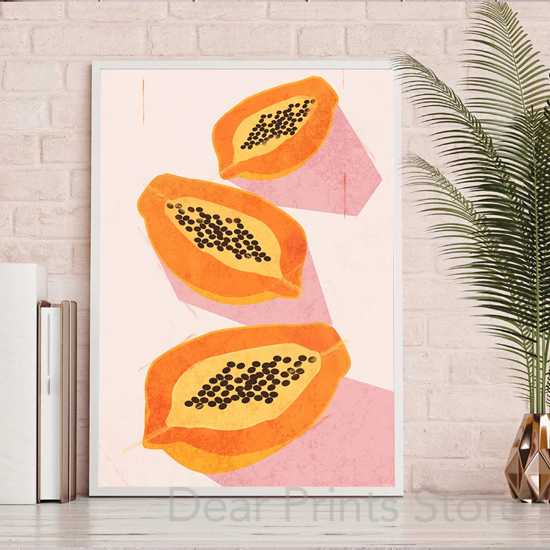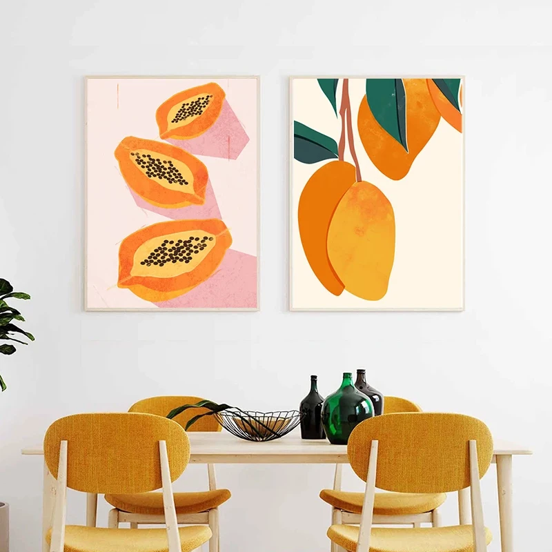 Тропические фрукты, манго, папайя, акварель, художественная живопись, холст, плакаты и принты, кухонные настенные декоративные картины для столовой