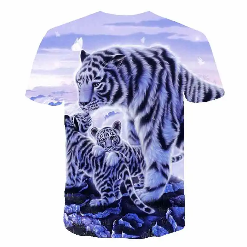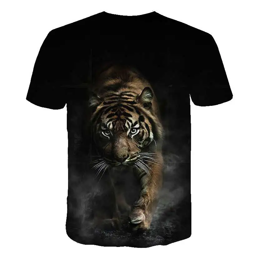 Футболка мужская и женская с 3D-принтом тигра, воздухопроницаемая рубашка в стиле хип-хоп, модная повседневная свободная футболка с круглым вырезом для детей