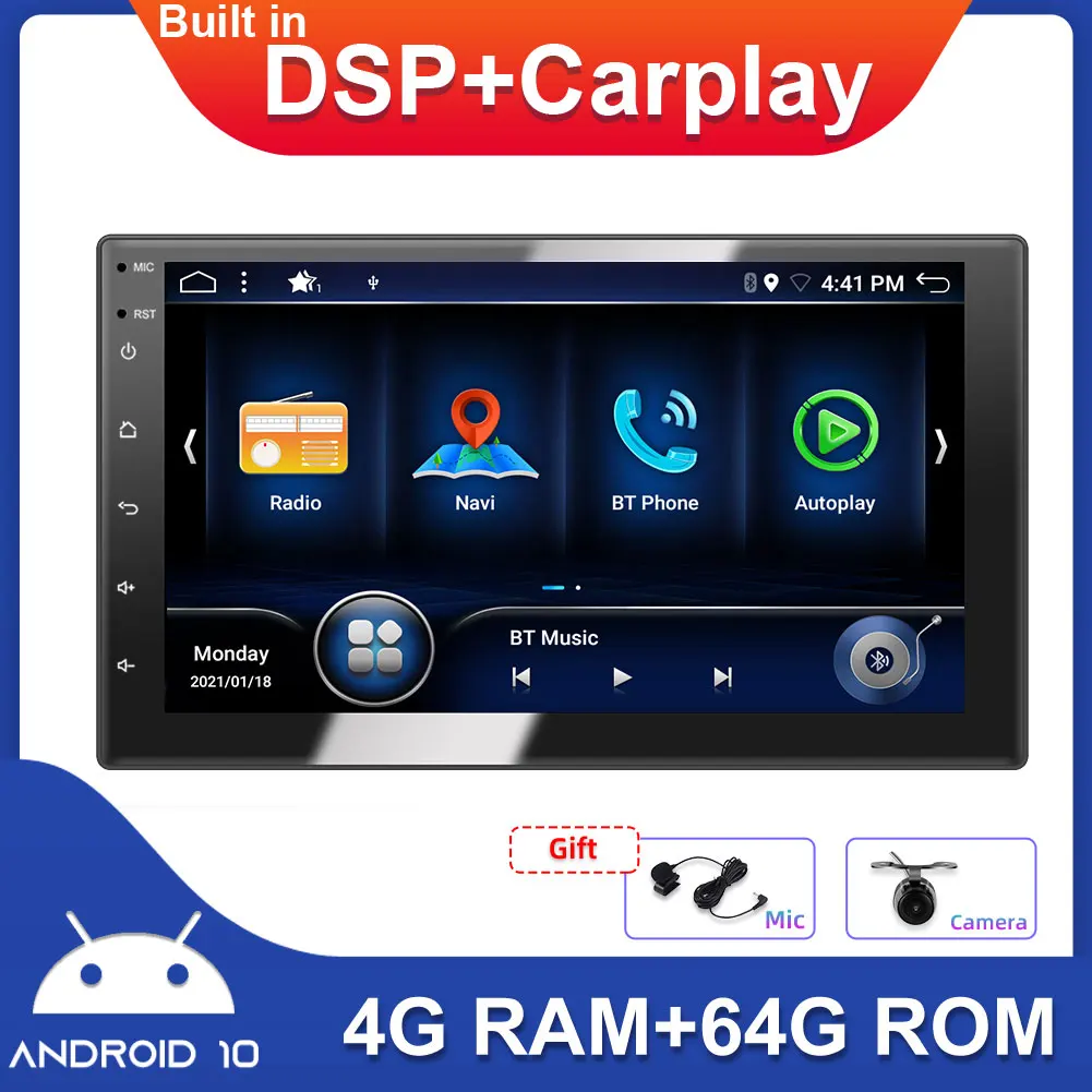 Автомагнитола 2 Din, стерео плеер, сенсорный экран 7 дюймов, встроенный DSP + Carplay + GPS, Android 10,0, радио 7786 + AMP IC TDA 7801, Bluetooth 5,0