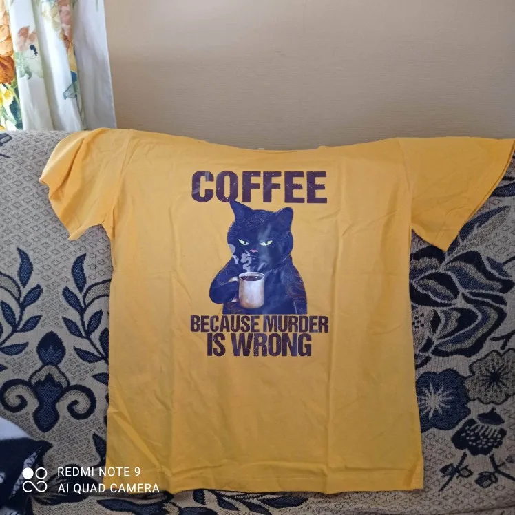 Пью кофе с очаровательным изображением котенка; 100% Хлопковая женс...