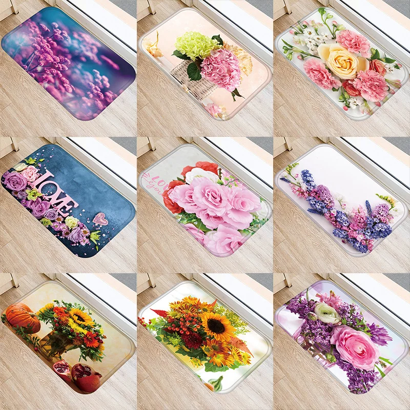 Цветочный узор для кухонной и входной двери коврик 40*60 см коралловые бархат ковры резиновая красочные Крытый коврики Non-Противоскользящий коврик 48259-2