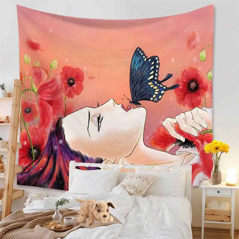 Цветы, красота, богиня, гобелен, настенный, для девочек, для спальни, фон для спальни, художественный декор, полиэстер, ткань, Psychedelic, гобелен, настенные коврики