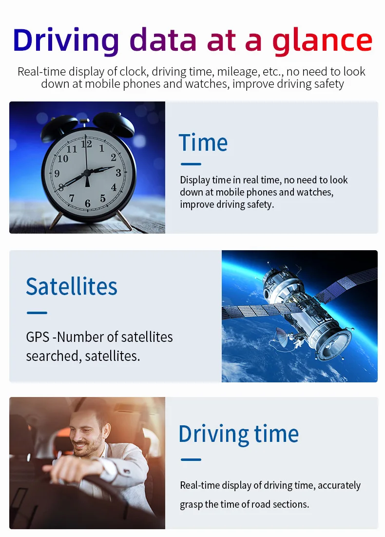 Функции режима OBD: скорость вождения (миль/ч или км/ч), скорость двигателя, температура резервуара для воды (°C/°F), расход топлива, напряжение батареи, один пробег, одно время вождения, В режиме реального времени, проверка мощности, четкий код неисправности, Автоматическая/Ручная регулировка яркостиСигнализация: сигнализация с превышением скорости, сигнализация с температурой воды, сигнализация с низким напряжением, сигнализация с усталостью, напоминание о неисправности вожденияФункции режима GPS: скорость вождения, напряжение батареи, количество сателлитов, расстояние одиночного вождения, Время в режиме реального времени, высота, компас, переключение миль, Автоматическая/Ручная регулировка яркостиСигнал тревоги: сигнал тревоги низкого напряженияРучная или автоматическая регулировка яркости