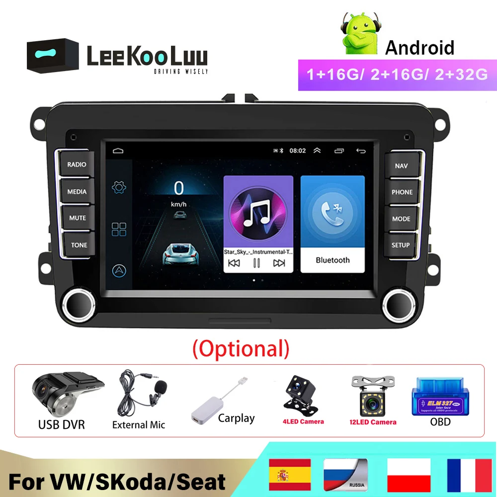 Автомагнитола LeeKooLuu, 2 din, Android 8,1, GPS, мультимедийный плеер для VW Volkswagen Golf 5 6 Polo Tiguan Passat b6 b7 Skoda Leon Seat