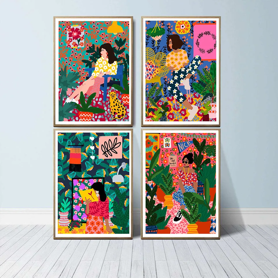 Абстрактная Мода винтажная Цветочная девушка настенная Картина на холсте скандинавские постеры и принты настенные картины для гостиной домашний декор