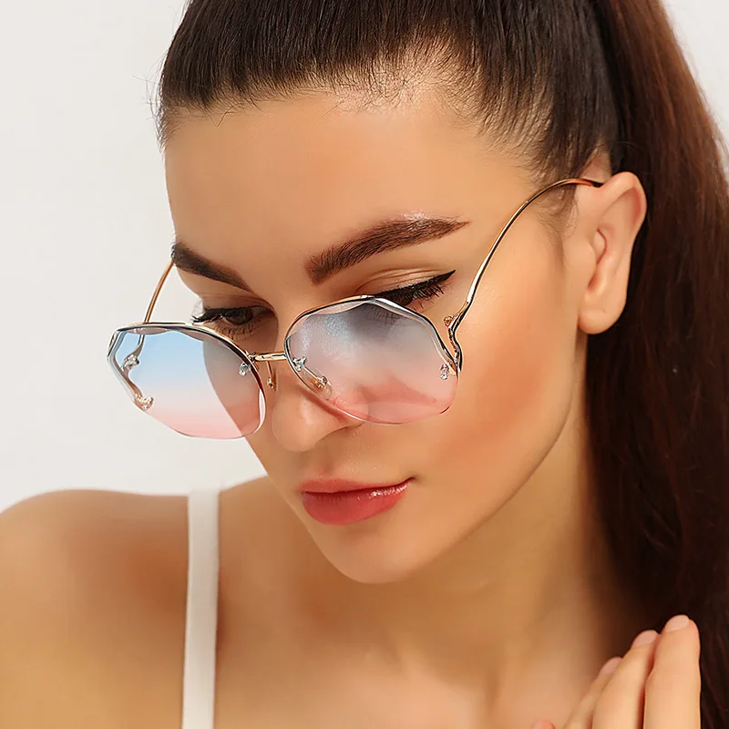 Новинка, женские солнцезащитные очки, модные Металлические европейские и американские Солнцезащитные очки, женские солнцезащитные очки без оправы