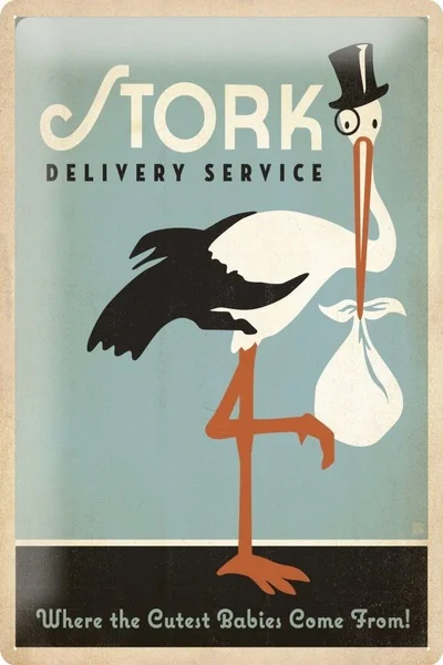 Оловянный Знак Птица вид аист Доставка детская голубая металлическая пластина