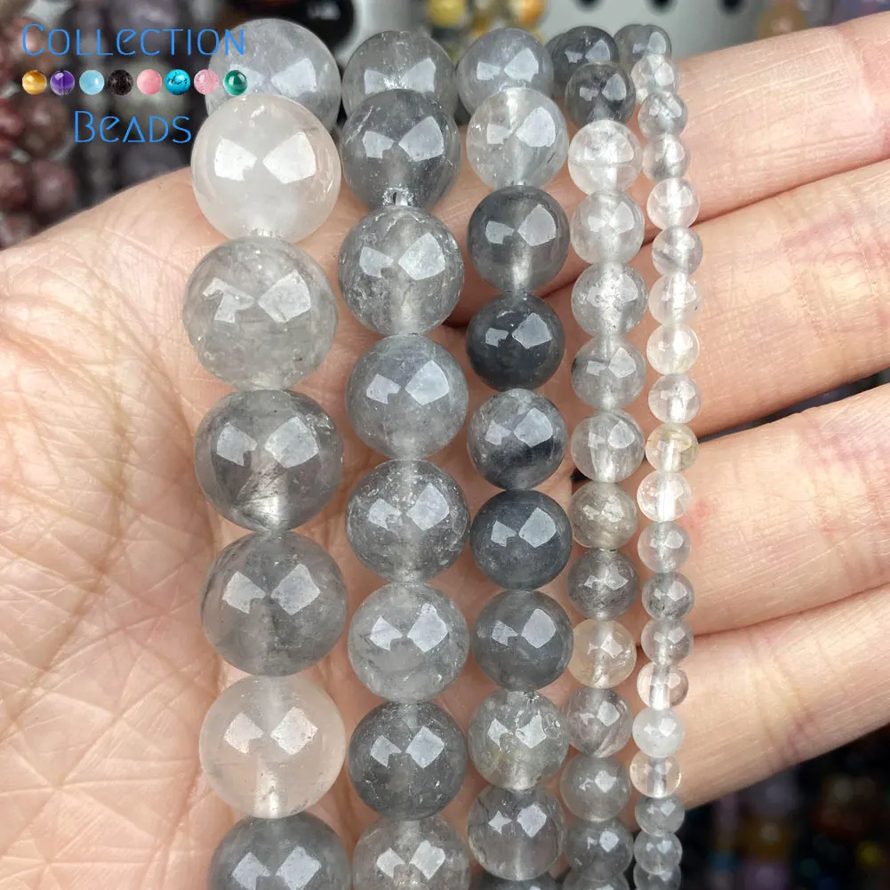 Натуральный камень серый Кварцевый Кристалл Свободные Круглые бусины для изготовления ювелирных изделий 4-12 мм DIY аксессуары для браслета оптовая продажа