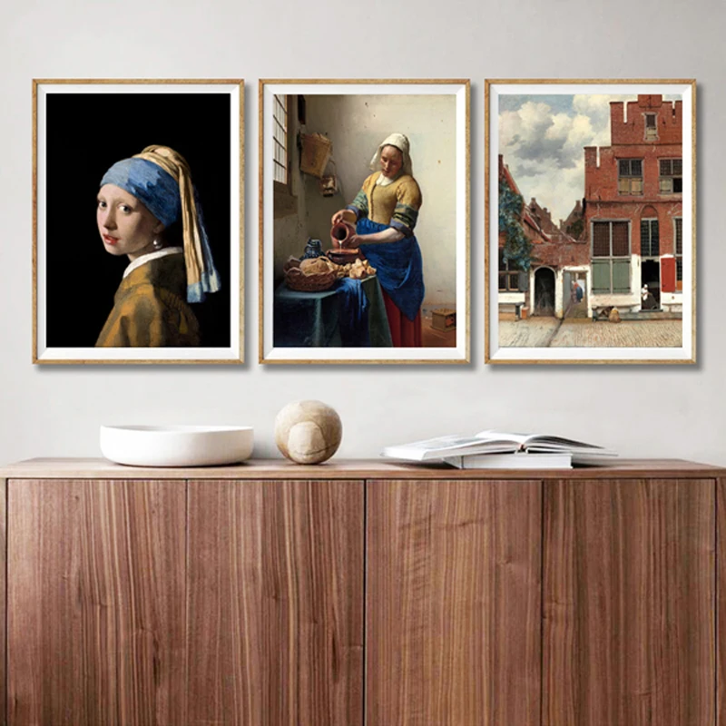 Девушка с жемчужинами серьги, йоханнесс Вермеер галерея настенное Искусство Холст Живопись постер Milkmaid живопись Гостиная Интерьер Декор