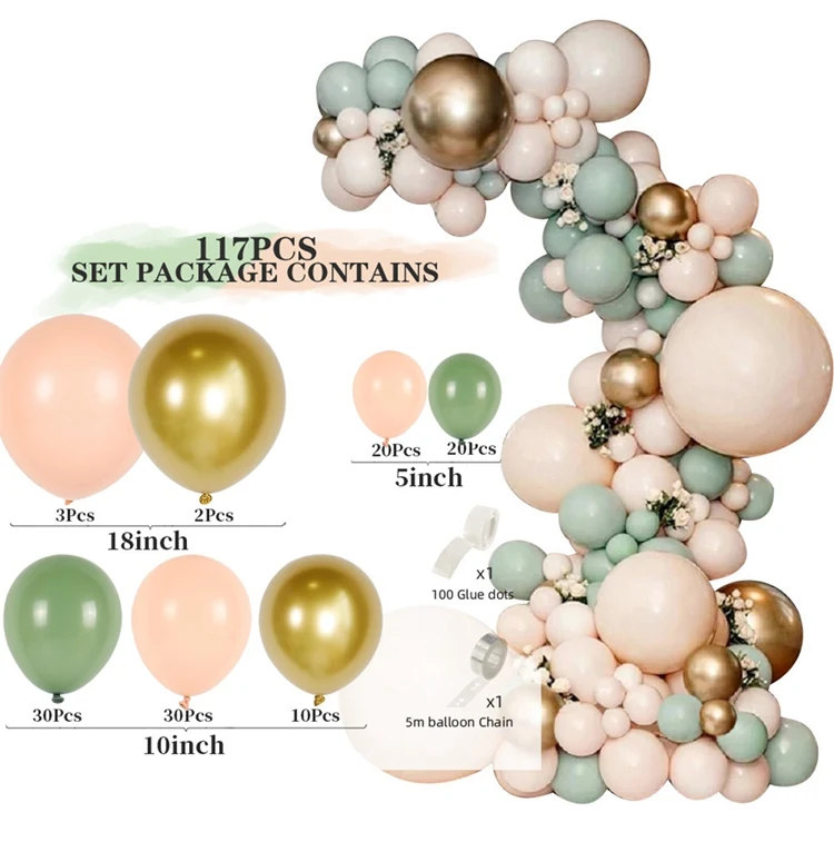 Зеленые макароны, искусственная АРКА, свадебное украшение, с днем рождения, детский праздник для первого дня рождения, воздушные шары