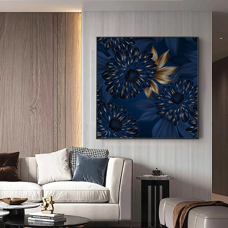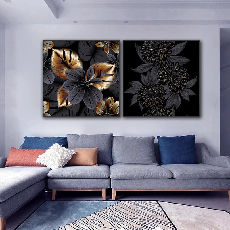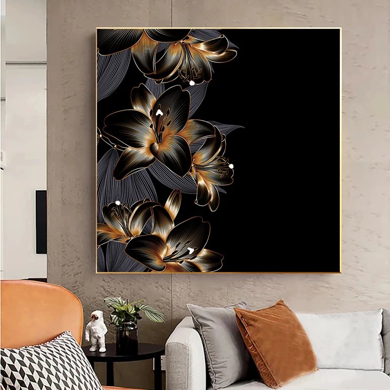 Абстрактная черная Золотая картина с цветами на холсте, настенные художественные плакаты, печатные картины, современный коридор, гостиная, украшение для дома