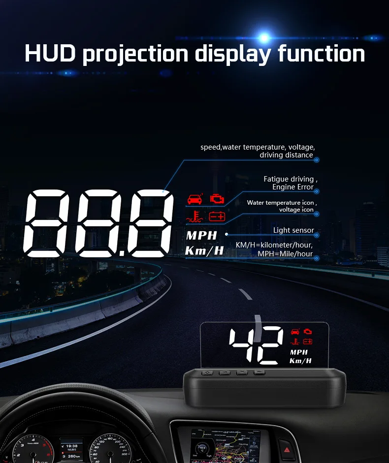 OBD2 HUD зеркало головой вверх Дисплей OBD2 EUOBD лобовое стекло Скорость проектор безопасности Предупреждение Температура воды более Скорость обмин Напряжение