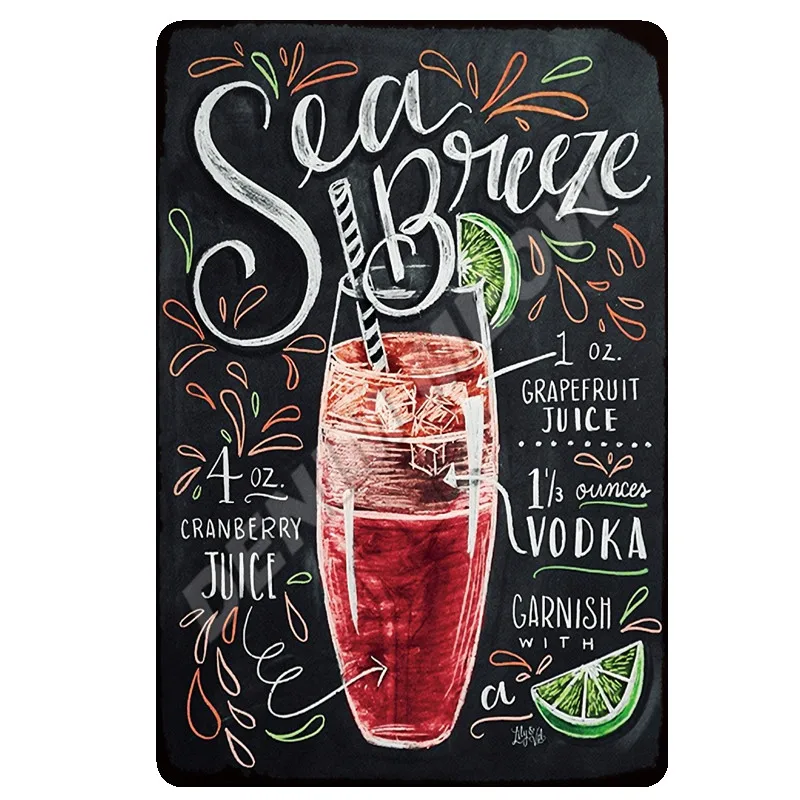Классические Коктейльные металлические знаки ледяной напиток клубника Daiquiri табличка винтажная Blackbord Рисование Бар паба постеры домашний декор WY4