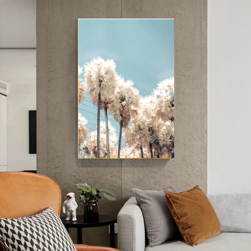 Красивый пейзаж, пейзаж, картина, розовая Скандинавская Настенная картина, плакат с плавающими тростниками, холст, картина без рамки, украшение для интерьера дома