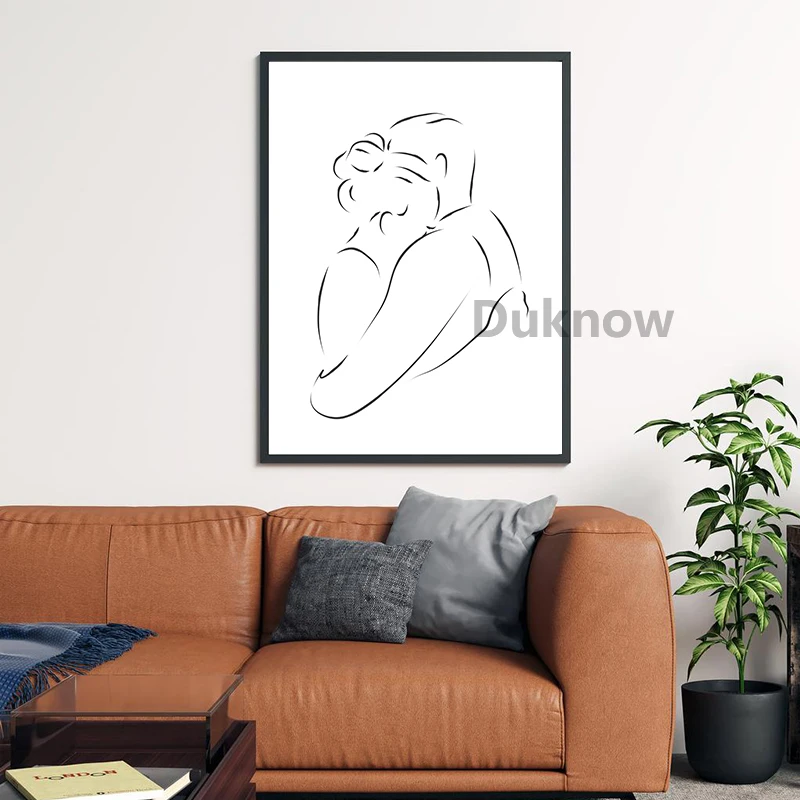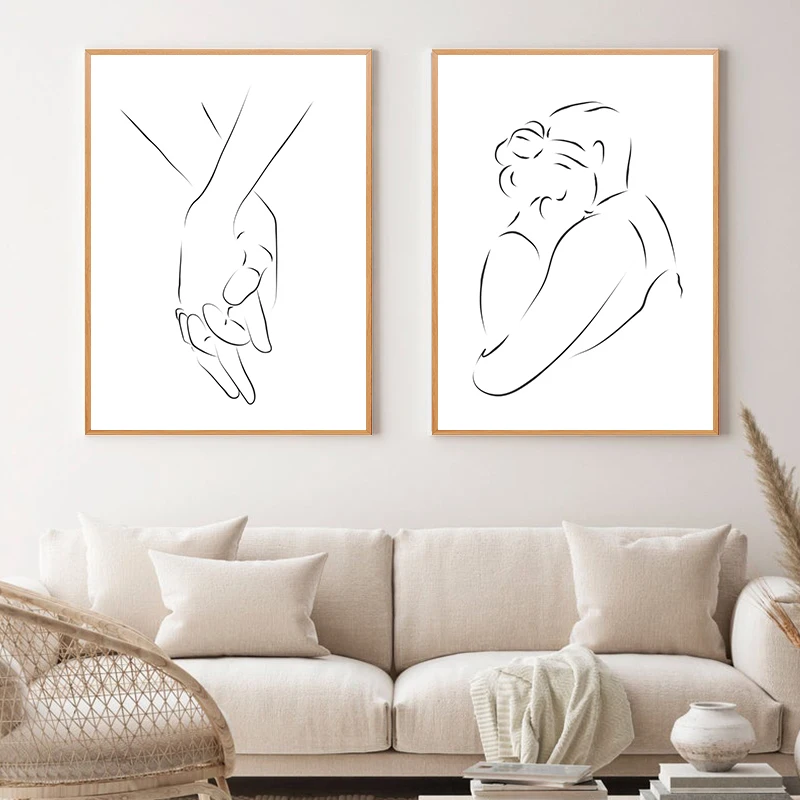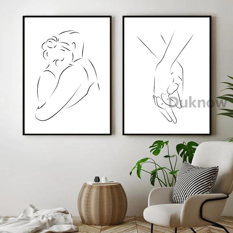 Настенные художественные абстрактные постеры с изображением линий для пары ручных обниманий черные и белые простые декоративные картины для спальни