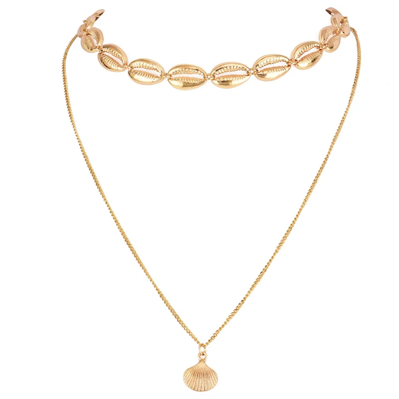 Бохо Гавайская Cowrie золотое ожерелье из морской раковины колье ювелирное богемное пляжное ожерелье с кисточкой ракушка золотая цепочка для женщин Chocker