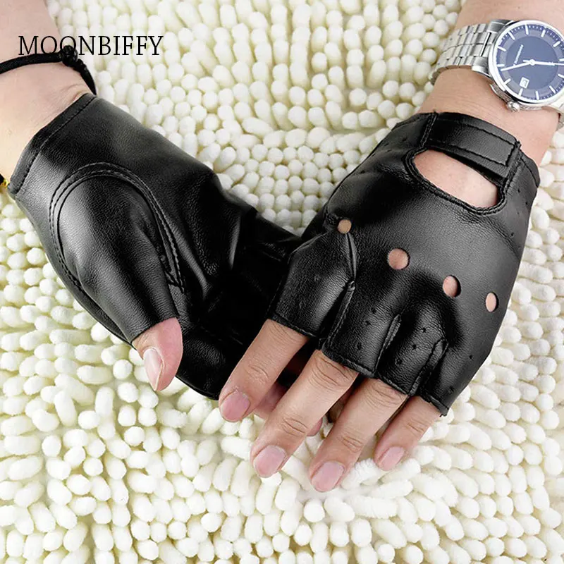 Митенки унисекс из искусственной кожи, перчатки без пальцев, в стиле хип-хоп, для вождения, езды на мотоцикле, выступлений, вечеринок