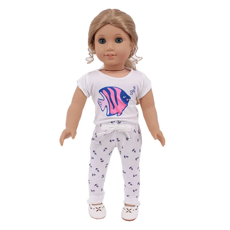 2 шт.компл., Одежда для кукол, Мультяшные пижамы, ночные рубашки, подходит для 18-дюймовых американских девочек и 43 см, игрушка для новорожденных