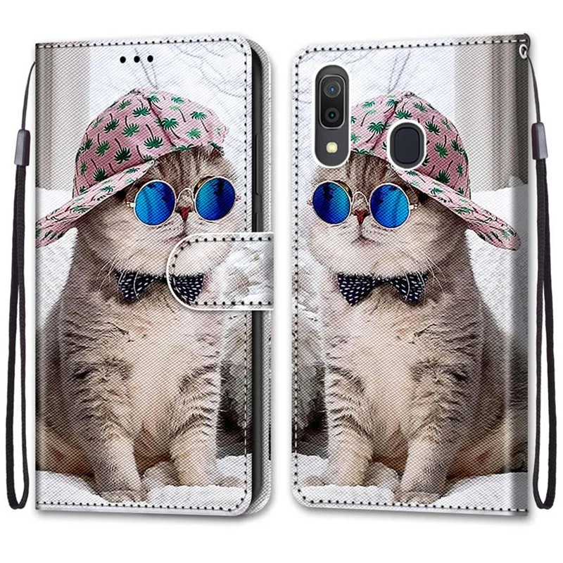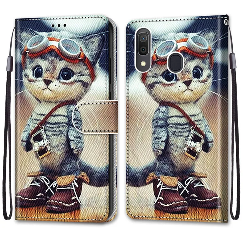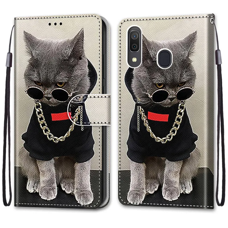 Симпатичный Забавный раскрашенный кожаный чехол-книжка для Samsung Galaxy A30 SM-A305F na для A30S A307F слот для карт кошелек чехол с животным рисунком