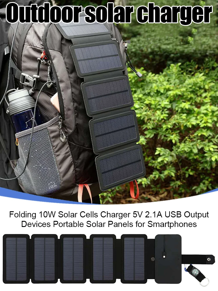 Портативное зарядное устройство для солнечных батарей, 10 Вт, 5 В, 2,1 А, USB-выход, комплект солнечных панелей, уличная инструменты для выживания для смартфонов