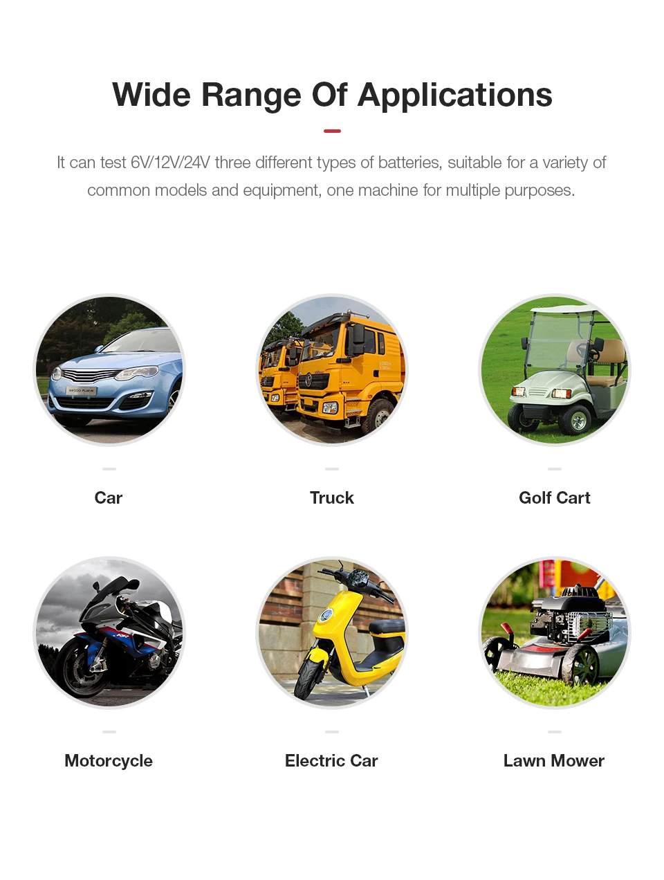 Он может протестировать 6 в/12 В/24 В три разных типа батарей, подходит для различных общих моделей и оборудования, одна машина для разных целей.