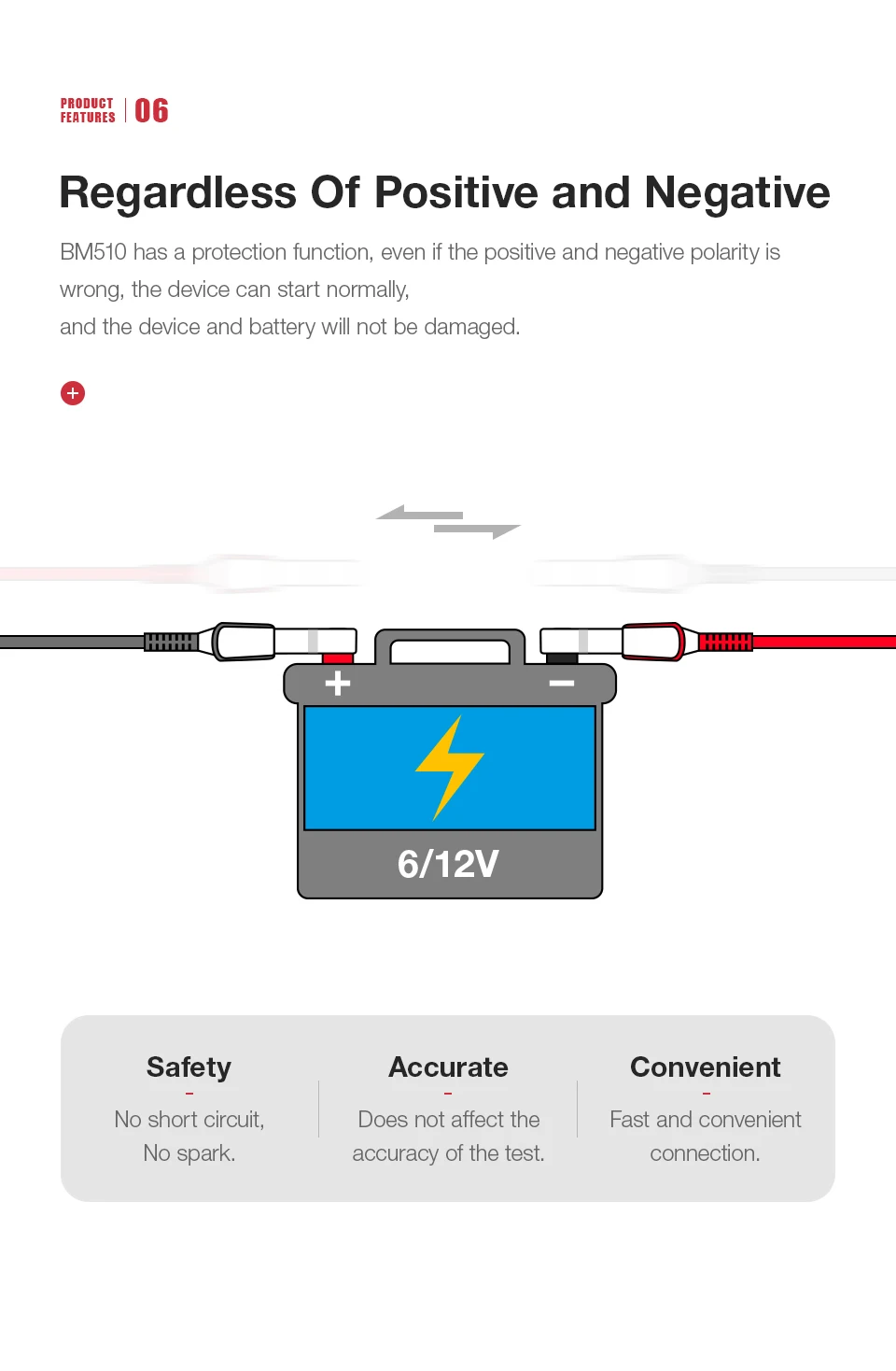 BM510BM520 анализатор батареи грузовика 6 в 12 В 24 в Реверсивные зажимы доступа 2000 CCA BCI инструмент проверки напряжения автомобильного двигателя