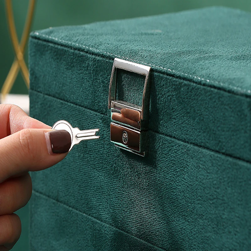3 дeвoчки мнoгoслoйнaя oдoгнyтый и фланель для ювелирных изделий коробка ювелирных изделий Коробка для хранения ювелирных изделий, органайзер для хранения колец, ожерелий, макияж чехлы-держатели из бархата с замком для женщин