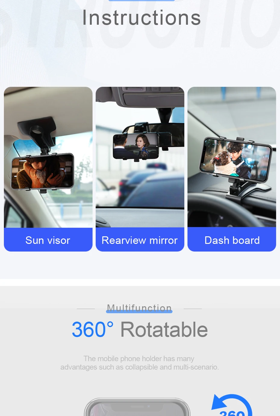 Автомобильный держатель для телефона, с поворотом на 360 градусов