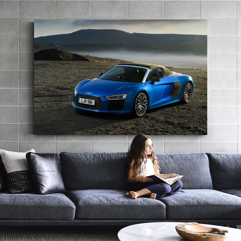 Обои Supercar Audis R8 V10 Blue Car Sport Car, Картина на холсте для украшения гостиной комнаты художественные плакаты и принты