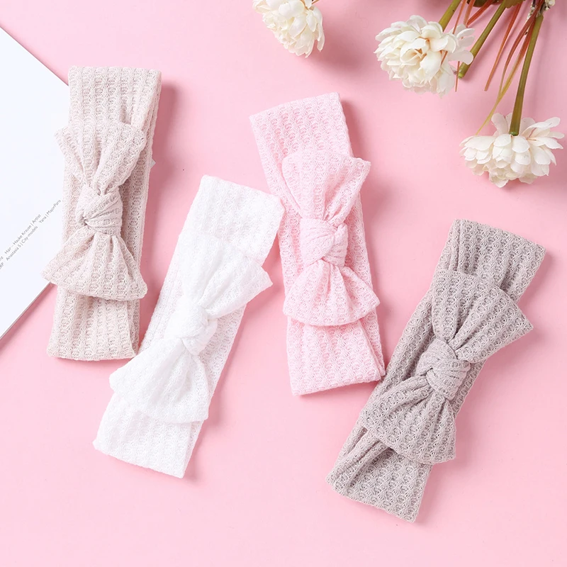 Повязка на голову вафельная для новорожденных девочек, однотонный т...
