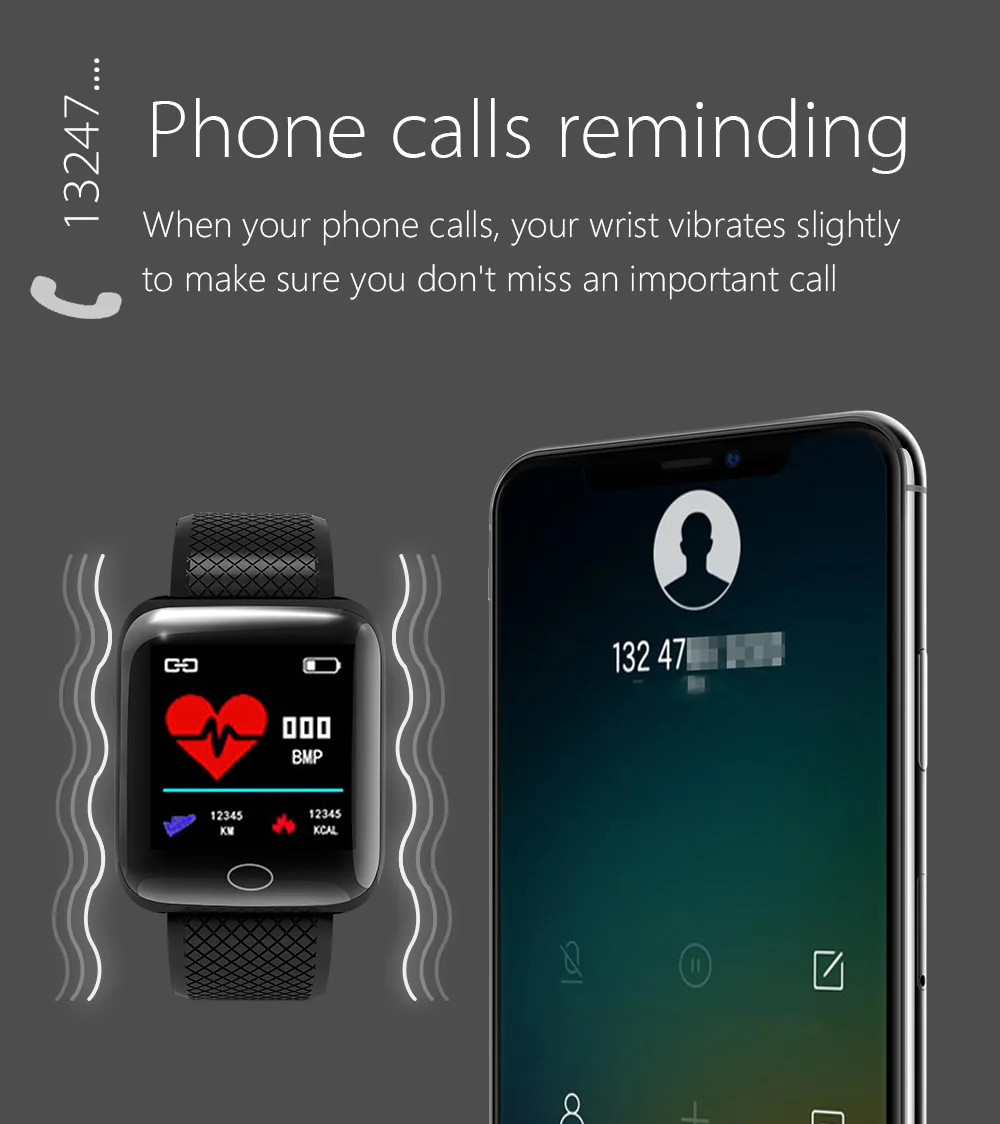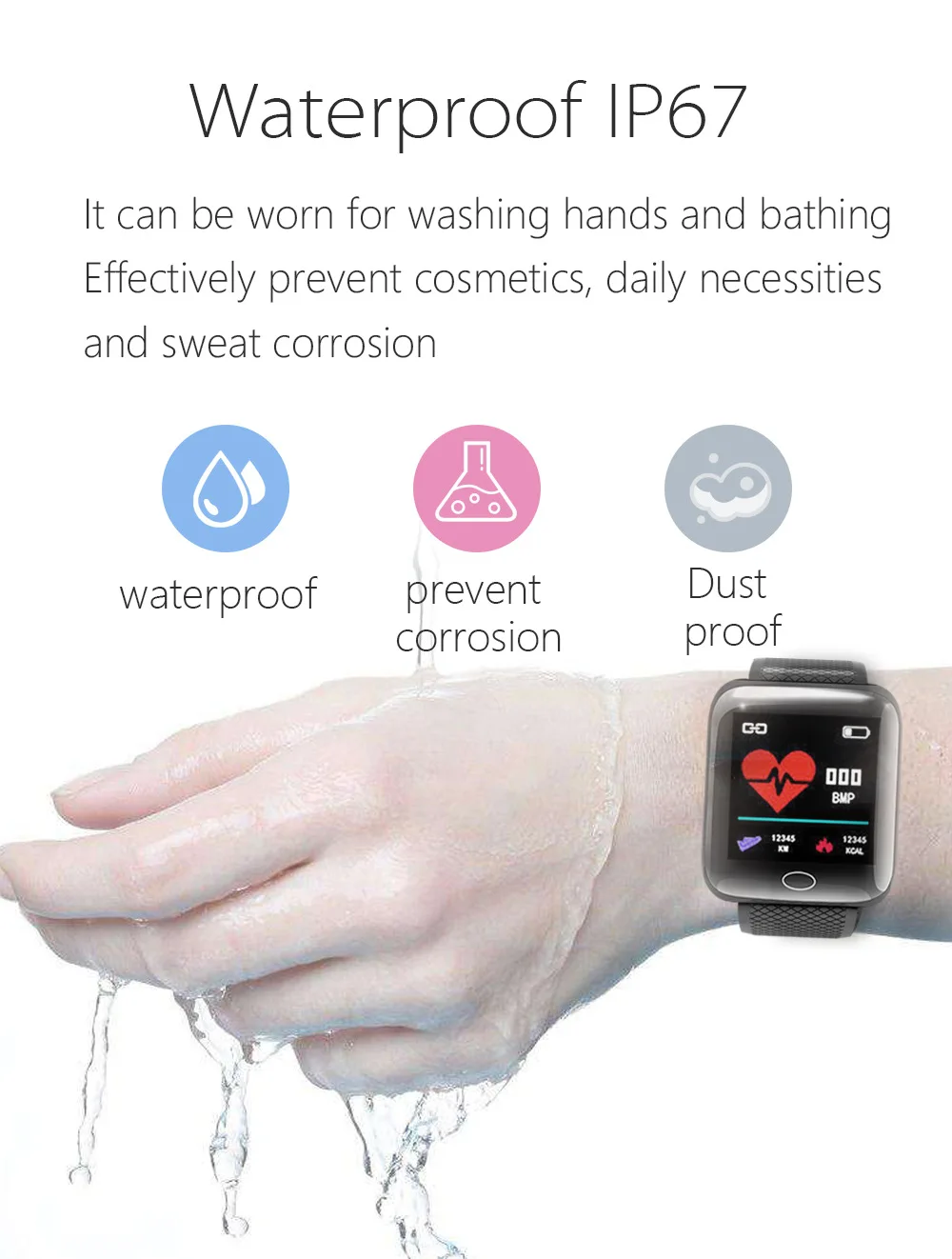 116Plus Смарт-часы для женщин и мужчин цветной экран Шагомер напоминание о звонке пульсометр Монитор артериального давления будильник умный Браслет