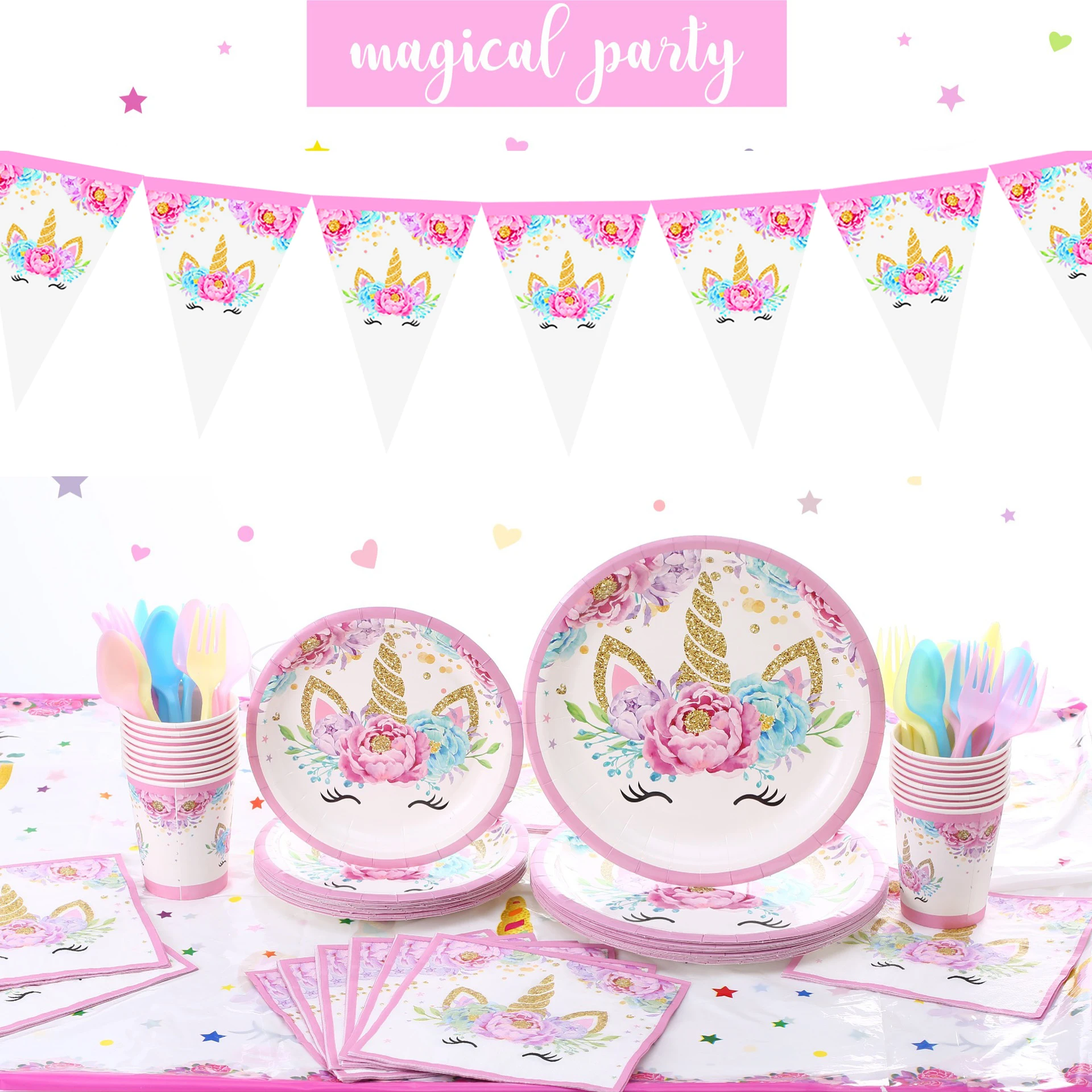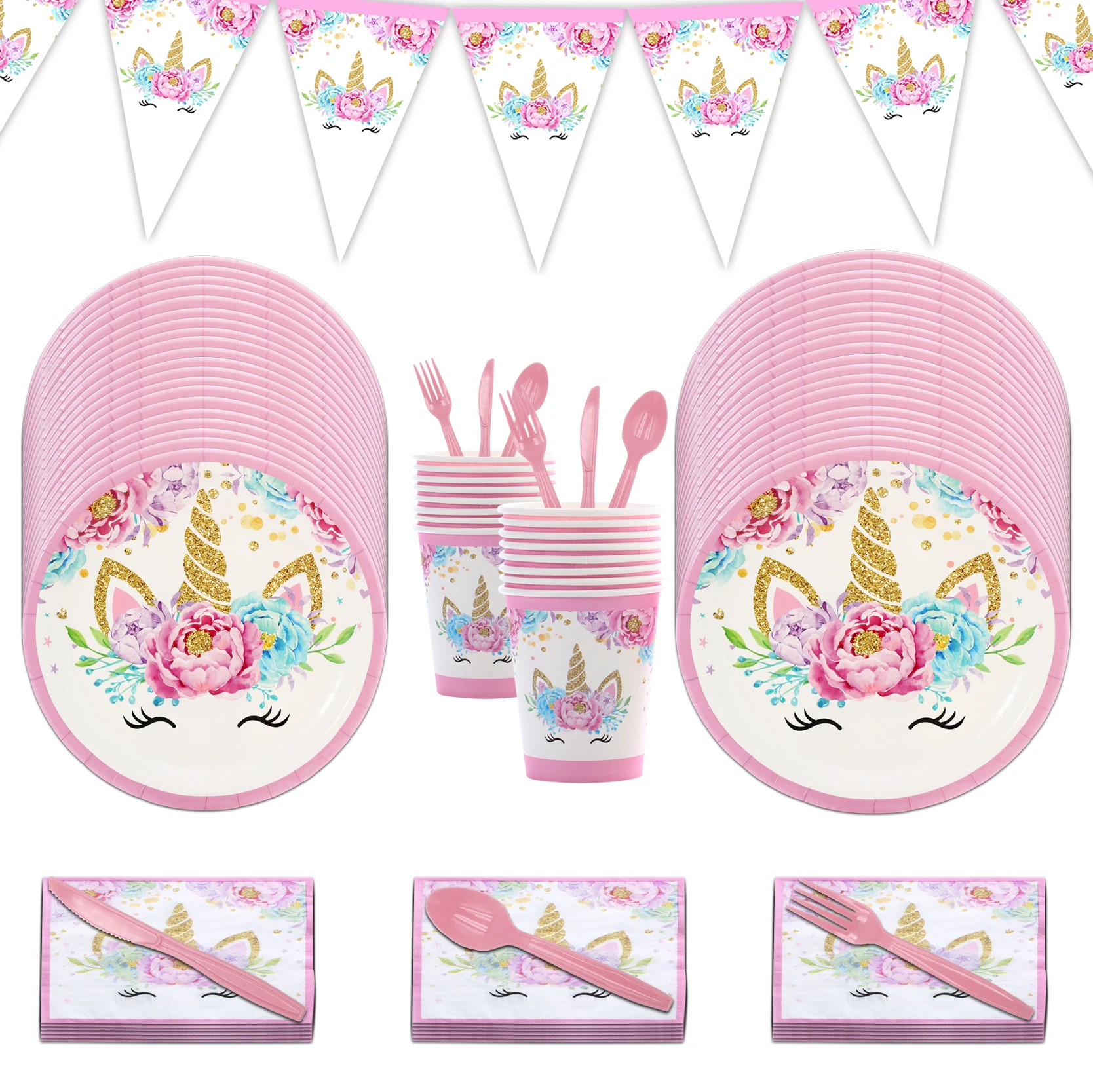 Розовый Единорог одноразовая посуда Единорог Салфетка под тарелку кружку Unicorinon Happy День рождения Декор для девочек 1st Детские Showr