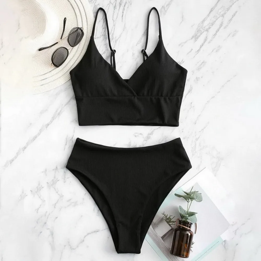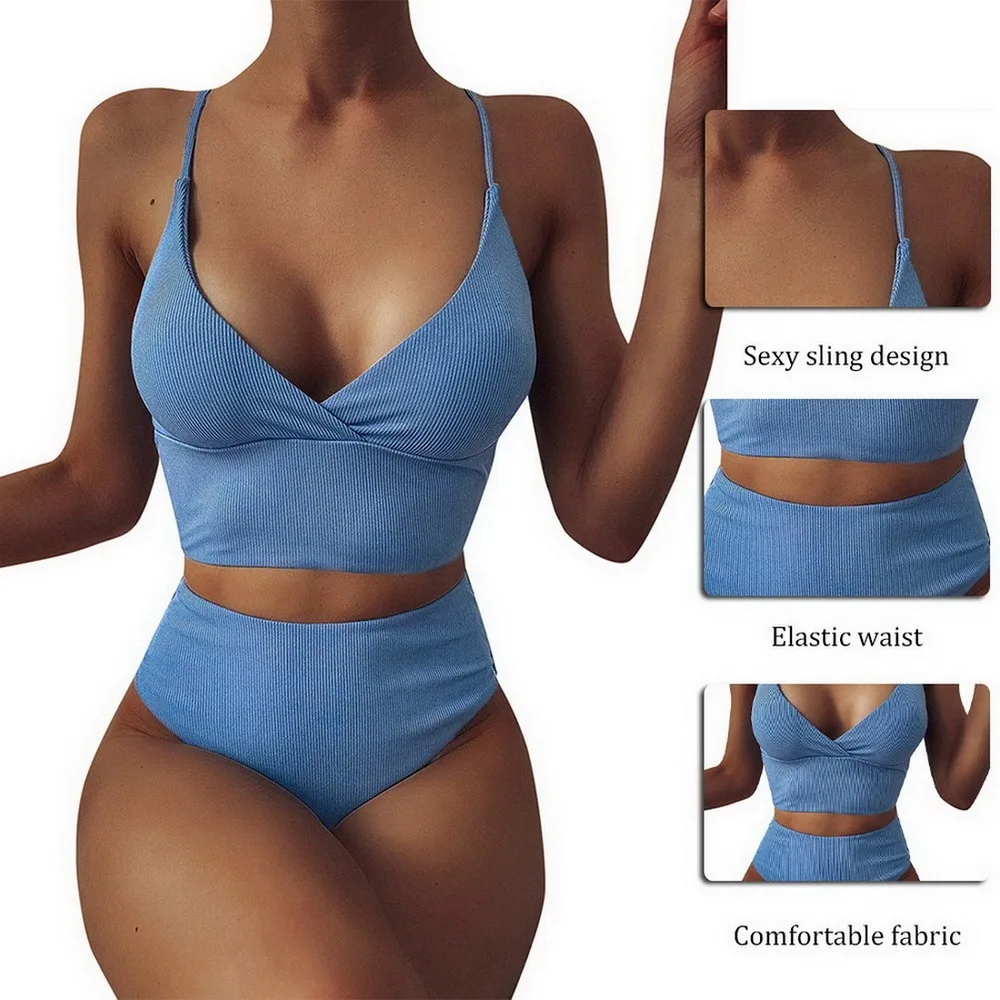Комплект бикини пуш-ап, купальники с высокой талией, женский купальник в рубчик, бикини, купальные костюмы, бразильские бикини 2021, однотонные купальники