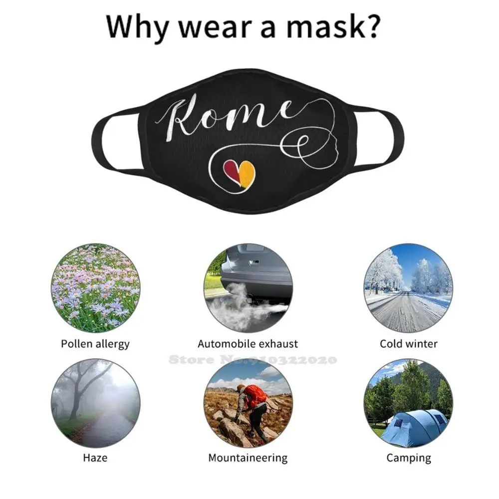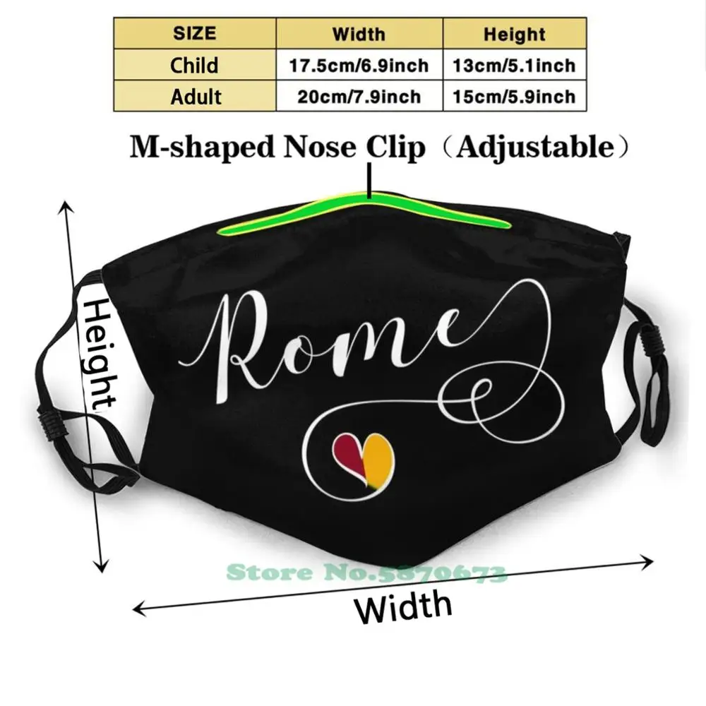 Римский флаг в форме сердца, рома, I Love, Рим, защита от пыли с фильтром для детей, для девочек и мальчиков, подростковые маски, Италия, итальянский, Римский флаг Романо, лазио