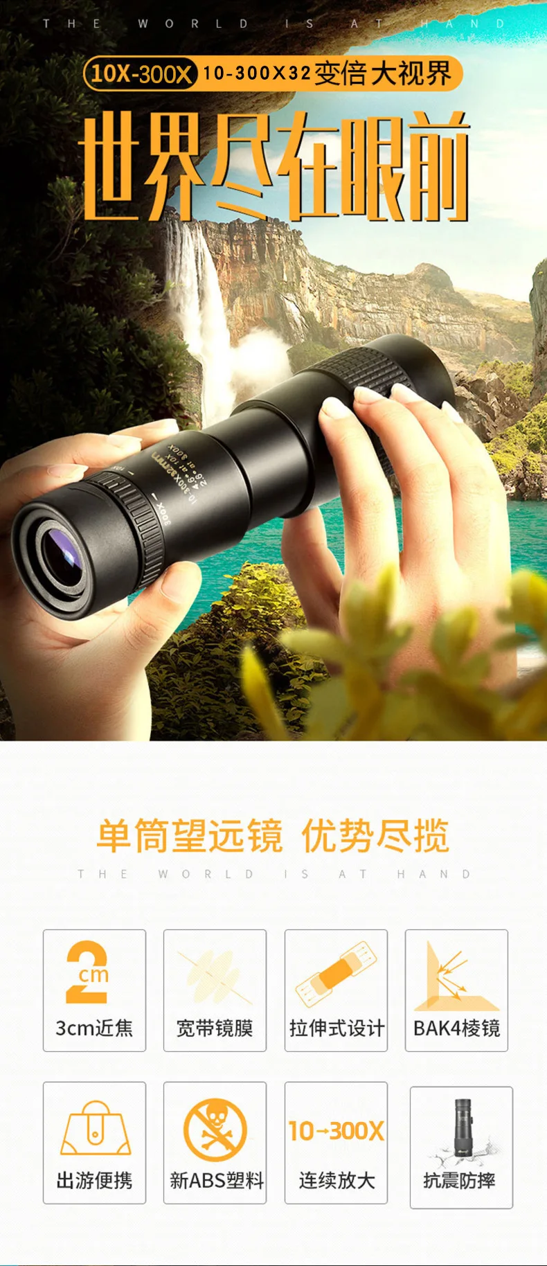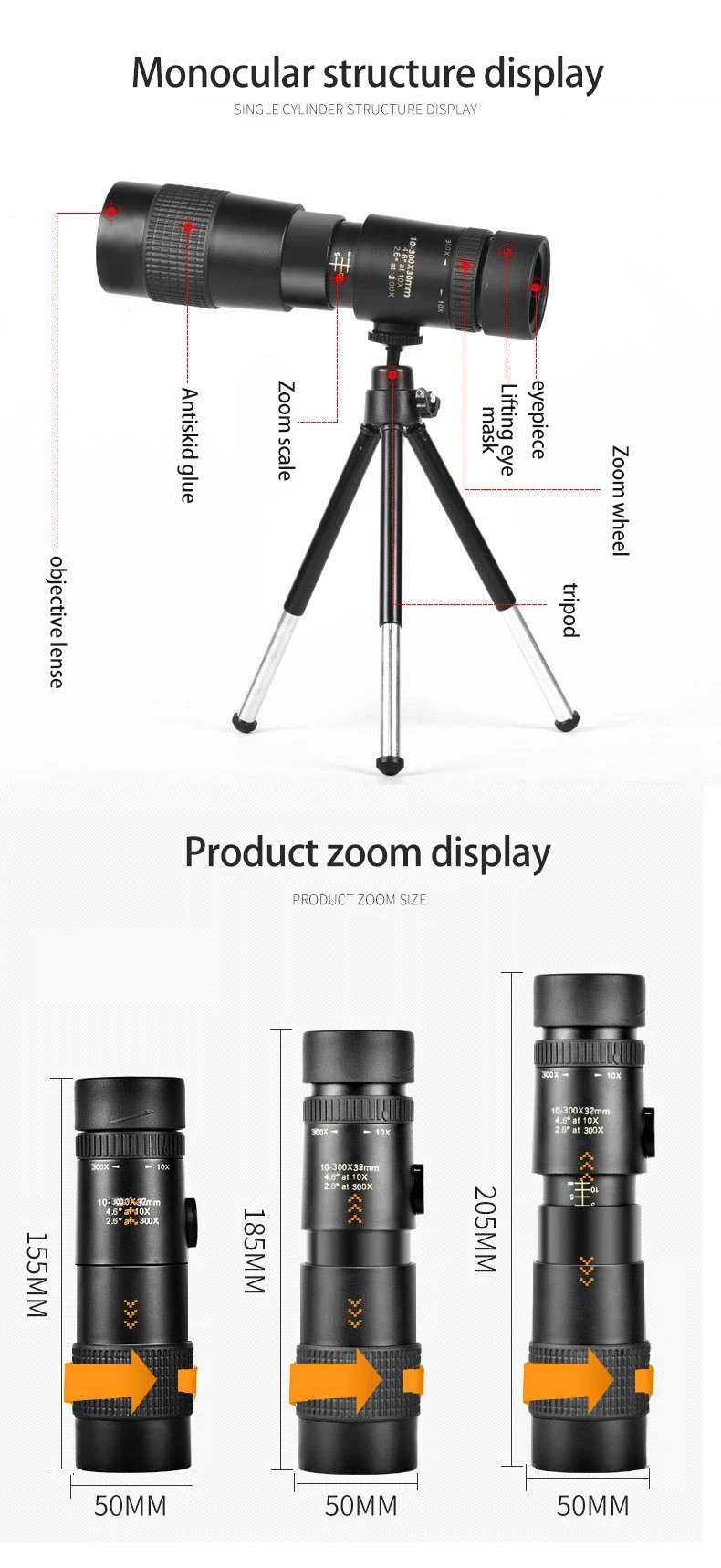 Монокулярный телескоп 4k10-300x40 мм, портативный, с Супер телефото зумом, для кемпинга, с поддержкой смартфона для съемки фото, оптовая продажа